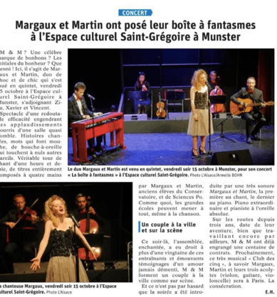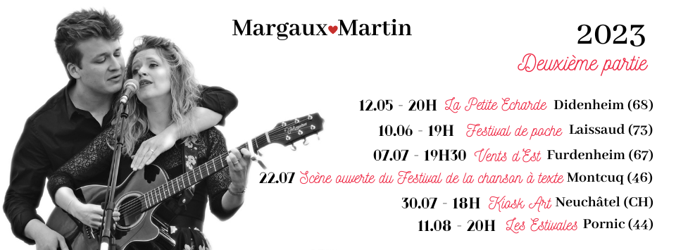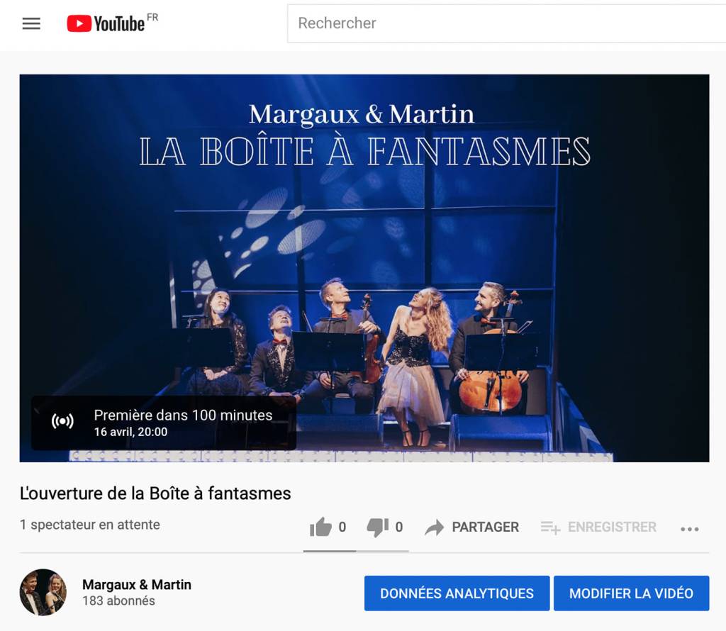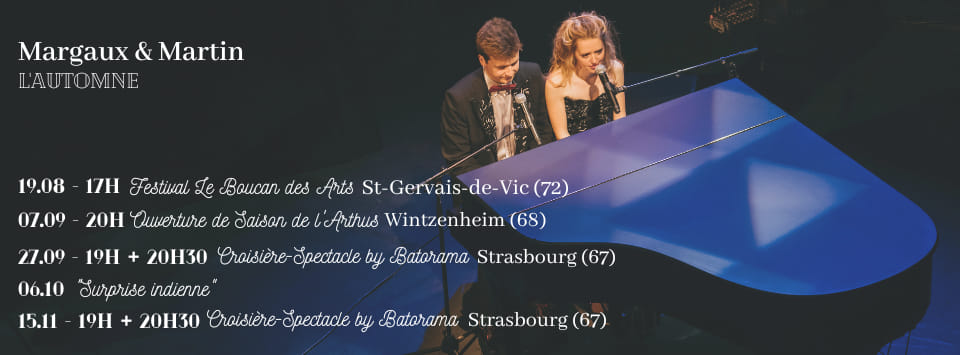 - Notre grande vidéo dévoilement de « Margaux & Martin dans l’Ed&n de nos salons » ! Bien que notre grande date à l’Ed&n de Sausheim est maintenant reportée au 16 avril 2021, nous ne souhaitions pas laisser passer l’occasion de vous présenter pour la première fois notre ménage à 5 avec Ziyu, Xavier & Vincent, à travers quatre morceaux que vous connaissez peut-être, et arrangés pour l’évènement (notamment grâce à Frédéric Arnold, que l’on remercie une nouvelle fois !)