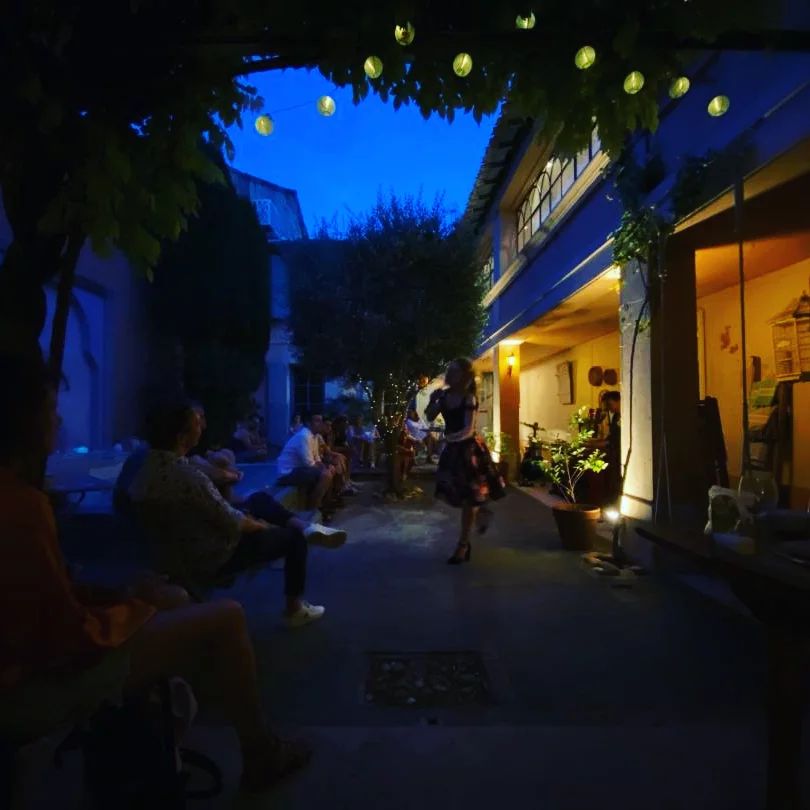 C’était un soir de semaine. Un mardi ordinaire d’été humide, un jour de nez contrarié par le rhume des clims, mais de jardin plein. Il y avait des petites tables rondes sur les pavés de Niederbronn, posées là comme les nénuphars le sont sur les étangs, une guirlande entre deux spots et une cabane de marché de Noël pour se changer. Le concert s’est tenu dans les dernières heures de lumière et quand le soleil s’est éteint, piano et guitare sont aussi allés dormir. C’était simple et fort, beau dans la douceur. On en a pris plein le cœur dans ce cabaret de verdure et quantité de gâteaux dans le Berlingot du retour.