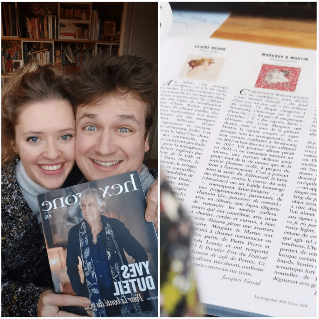 Ils nous ont vus sur scène, en première partie de Pierre Perret. C’était en 2018, au mois de mai. Six ans plus tard, ils nous organisent des retrouvailles sur scène avec l’entremise de l’association Salut l’Artiste : car eux aussi chantent pour le jeune public ! La vie et ses déclics, ses portes qui claquent mais ses fenêtres aussi, qui s’ouvrent grand sur des rencontres.