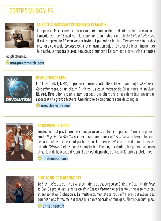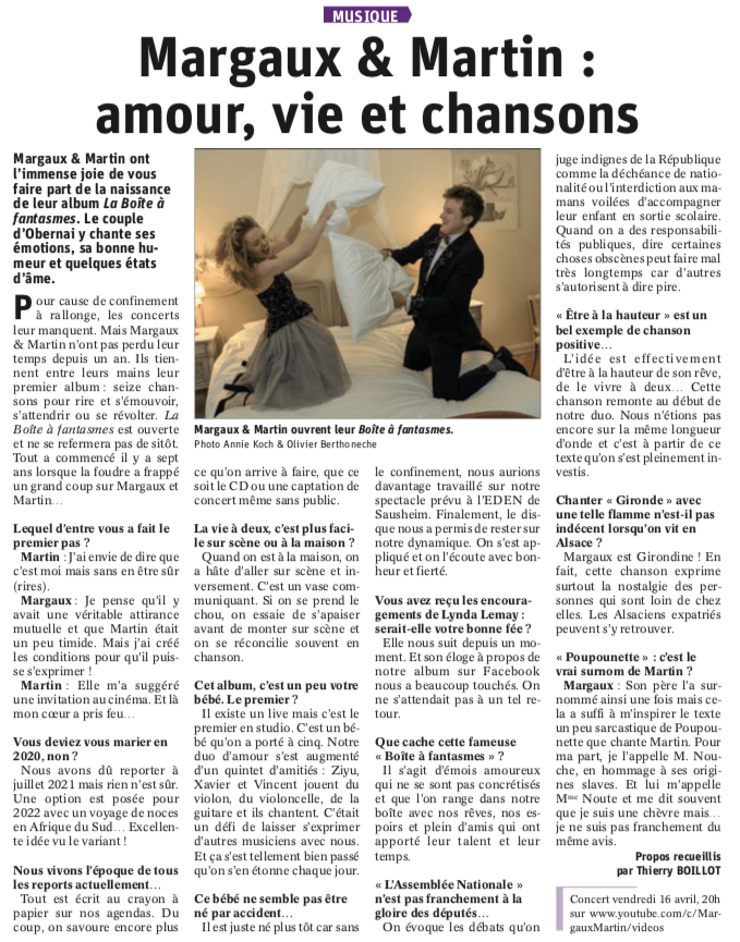 L’Alsace / DNA, avril 2021 – Interview confessions à l’occasion de la sortie de notre premier album studio, « La boîte à fantasmes »