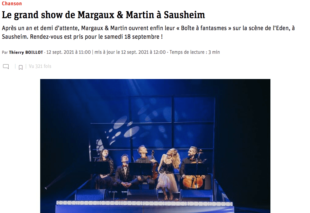 L‘Alsace, septembre 2021 – L’annonce de notre spectacle à l’Ed&n de Sausheim !