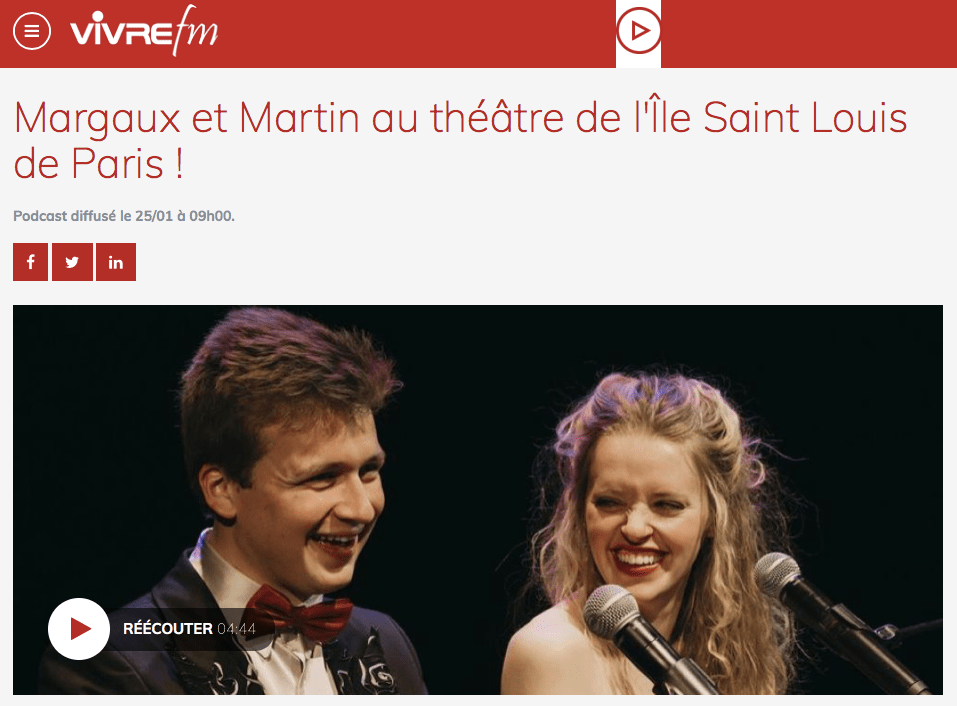VivreFM, janvier 2022 – Reportage en immersion au Théâtre de l’Île St-Louis pour notre concert du 22 janvier !