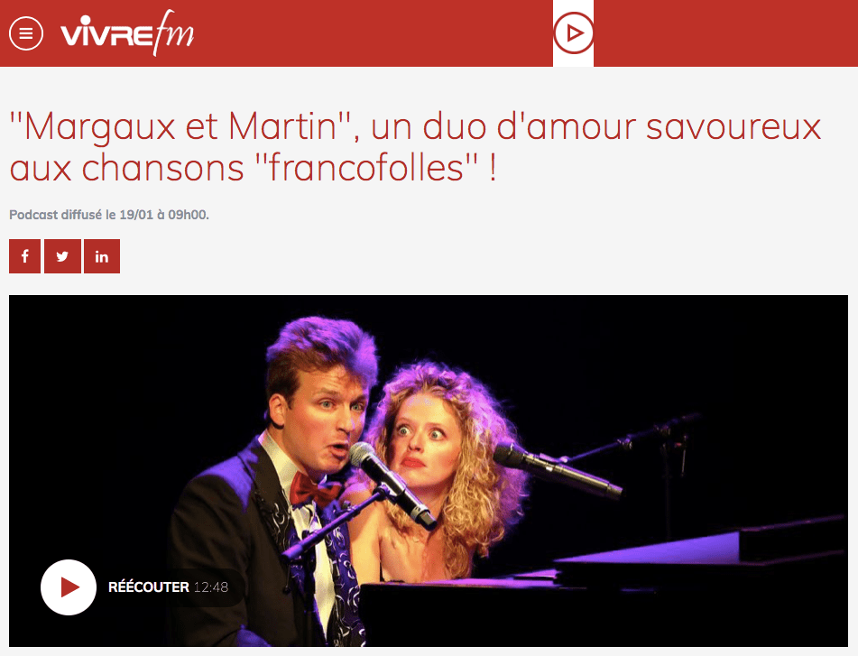 VivreFM, janvier 2022 – Première interview dans une radio parisienne en marge de notre concert au Théâtre de l’Île St-Louis